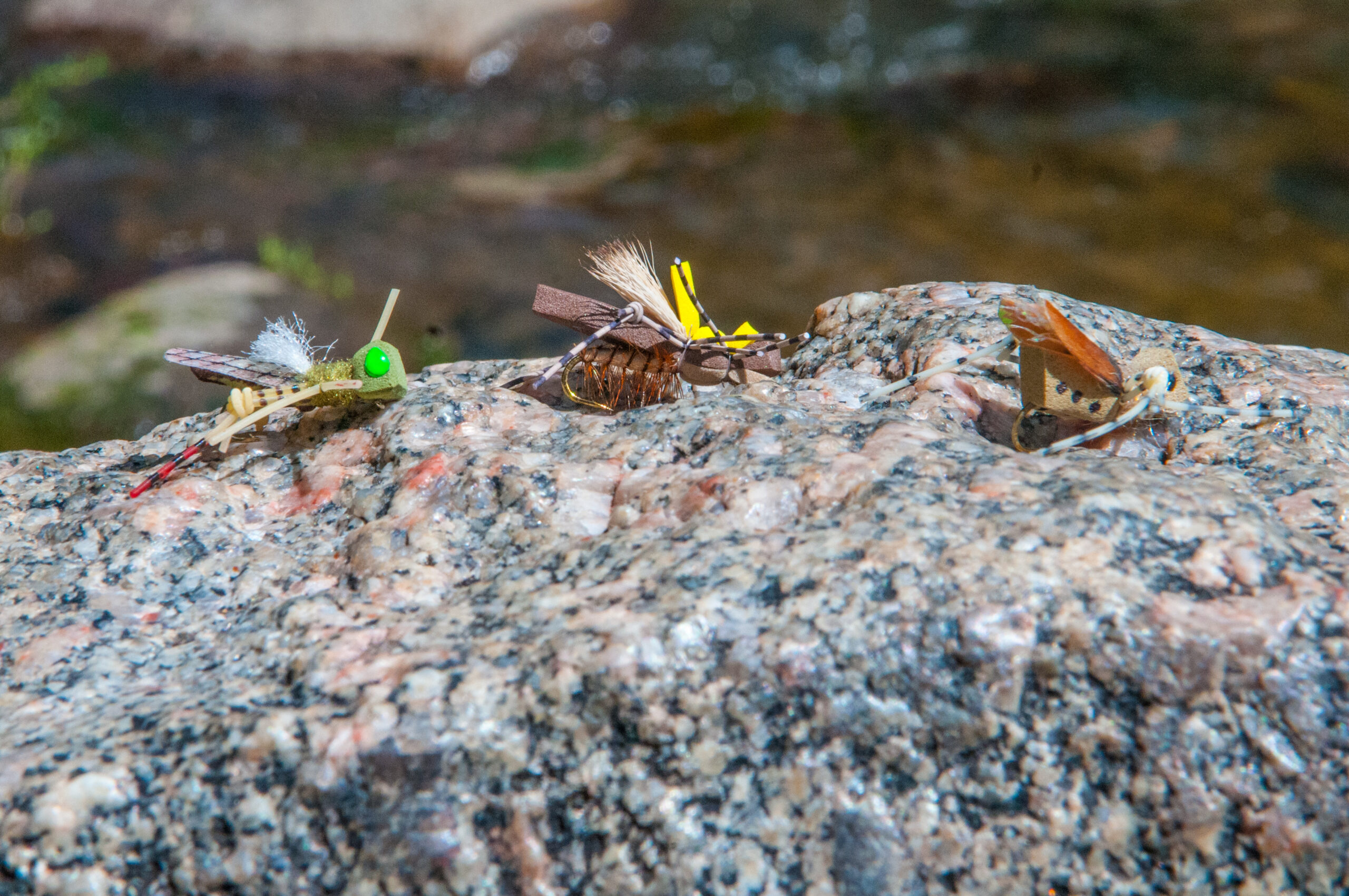 Chubby Chernobyls #8-14, Swisher Foam PMX #6-12, Regular PMX #4-16, Amys Ant #8-14, Morrish Hopper #6-10, B/C Hopper Dropper #6-12, Chubby Norman #8-14, Hippy Stomper #8-16.