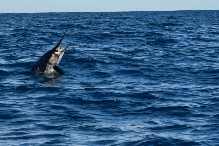 Bringing a Marlin to hand! Los Locos guide Steven Walker.