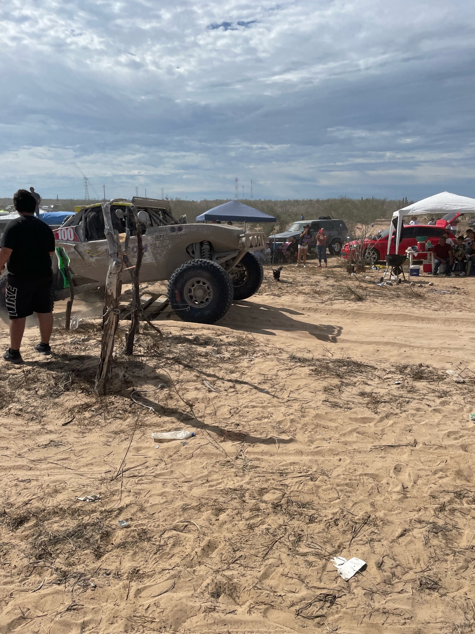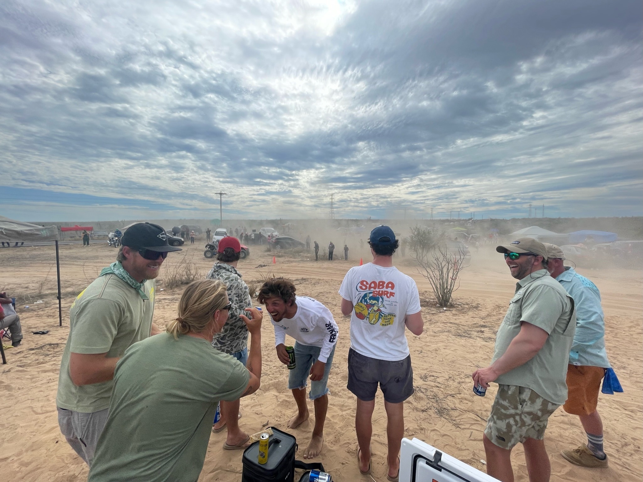 George the owner shucked oysters and served up cold beers in the desert while hanging during a bad weather day and checking out the Baja 1000!